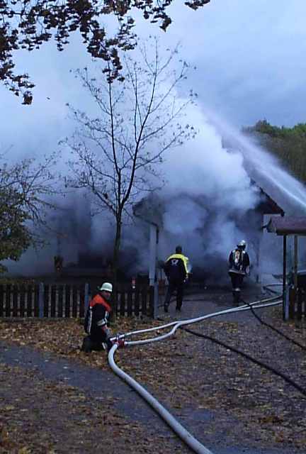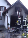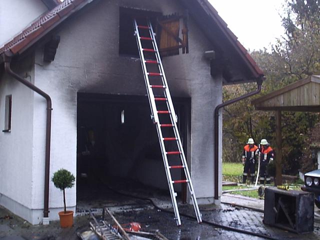 einem Garagenbrand am Erlmühlweg in Tegernbach alarmiert. Da die Alarmierende