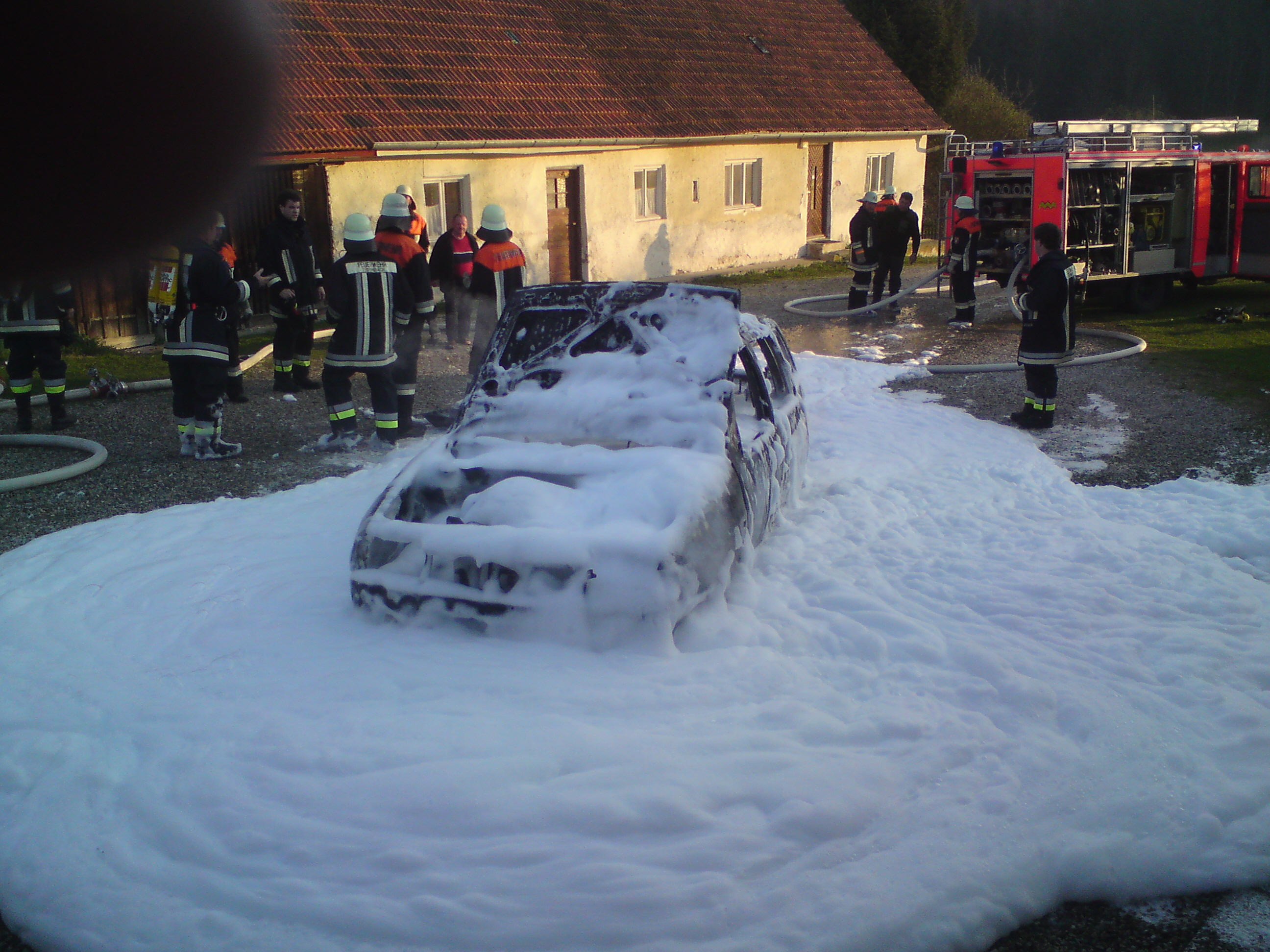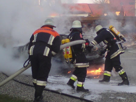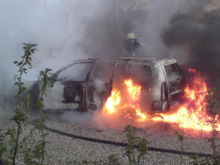 PKW bereits in Vollbrand und das Feuer drohte bereits auf Garage und
