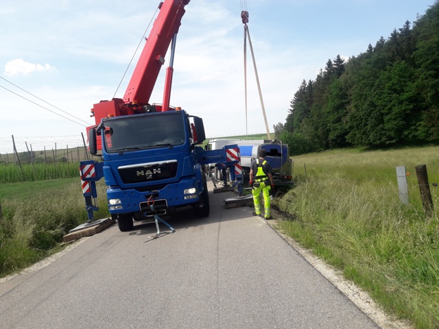 Straße zur Bergung des LKW's komplett gesperrt und nach erfolgter Bergung wurde