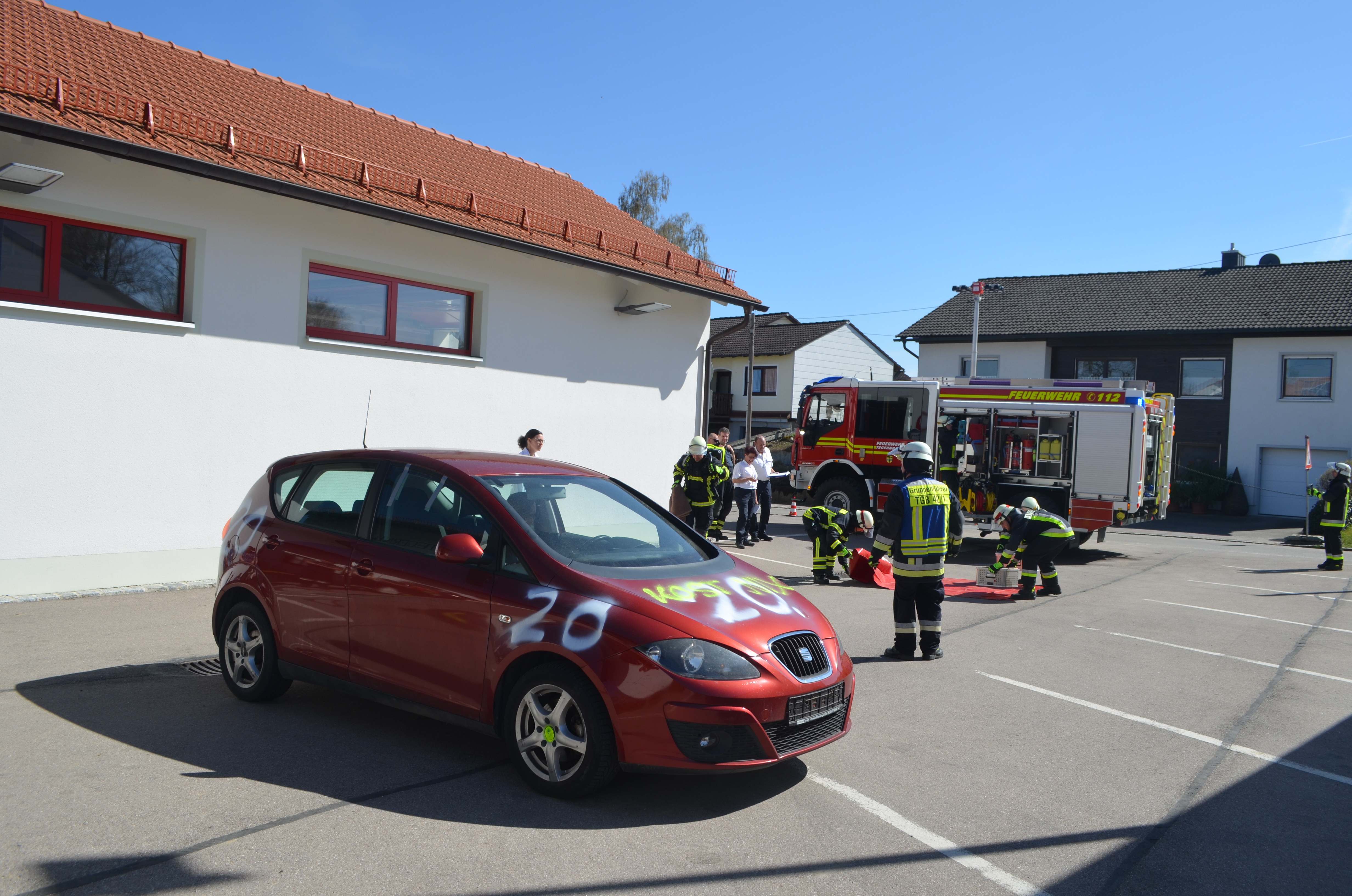 Szenario eines Verkehrsunfalls mit eingeklemmter Person. Dabei