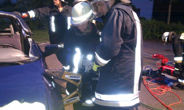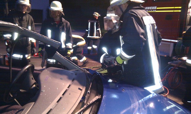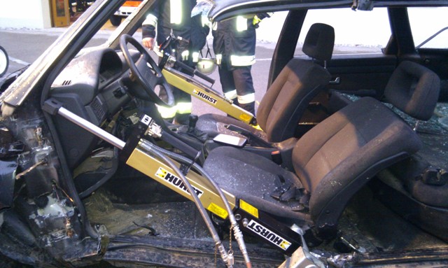 Szenario eines Verkehrsunfalls mit eingeklemmter Person. Dabei